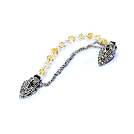 Брошь-зажим "Сияние" из Янтаря и кварца артикул 45325518 Вы можете заказать в нашем интернет магазине "Янтарь России" с бесплатной доставкой по всей России