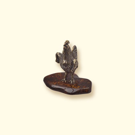 Фигурка "Петух" Латунь с Янтарем артикул 61157461 Вы можете заказать в нашем интернет магазине "Янтарь России" с бесплатной доставкой по всей России